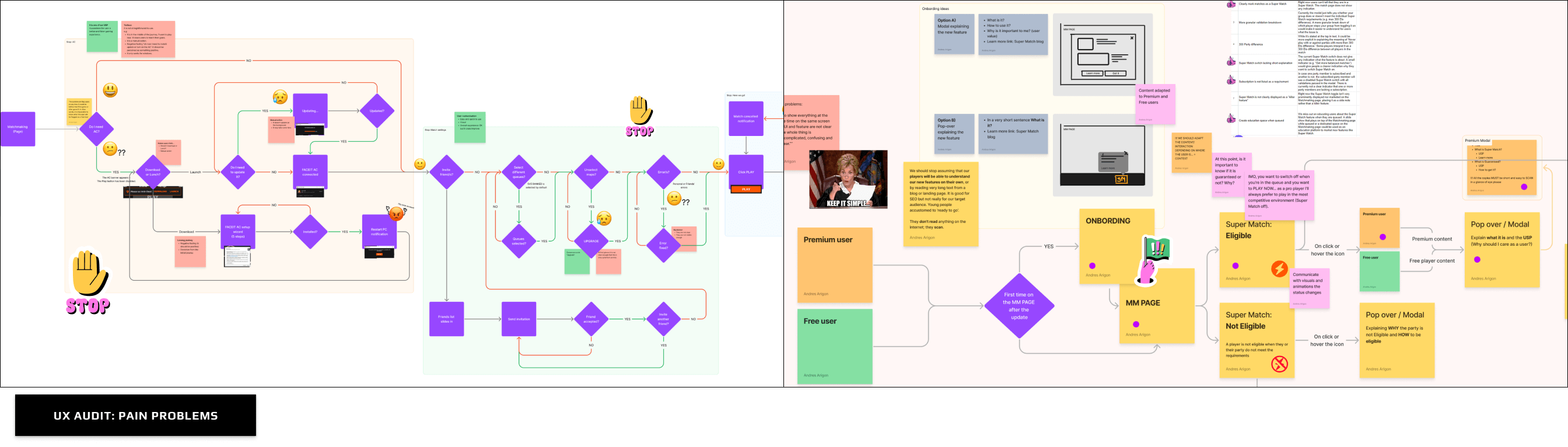 Breaking down the experience to reveal player pain and product friction. Mapped full user journeys and current flows. Backed insights with community threads, behavioural data, and user feedback.